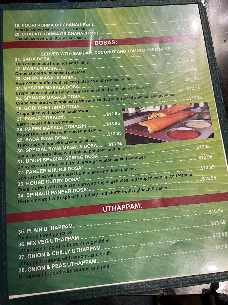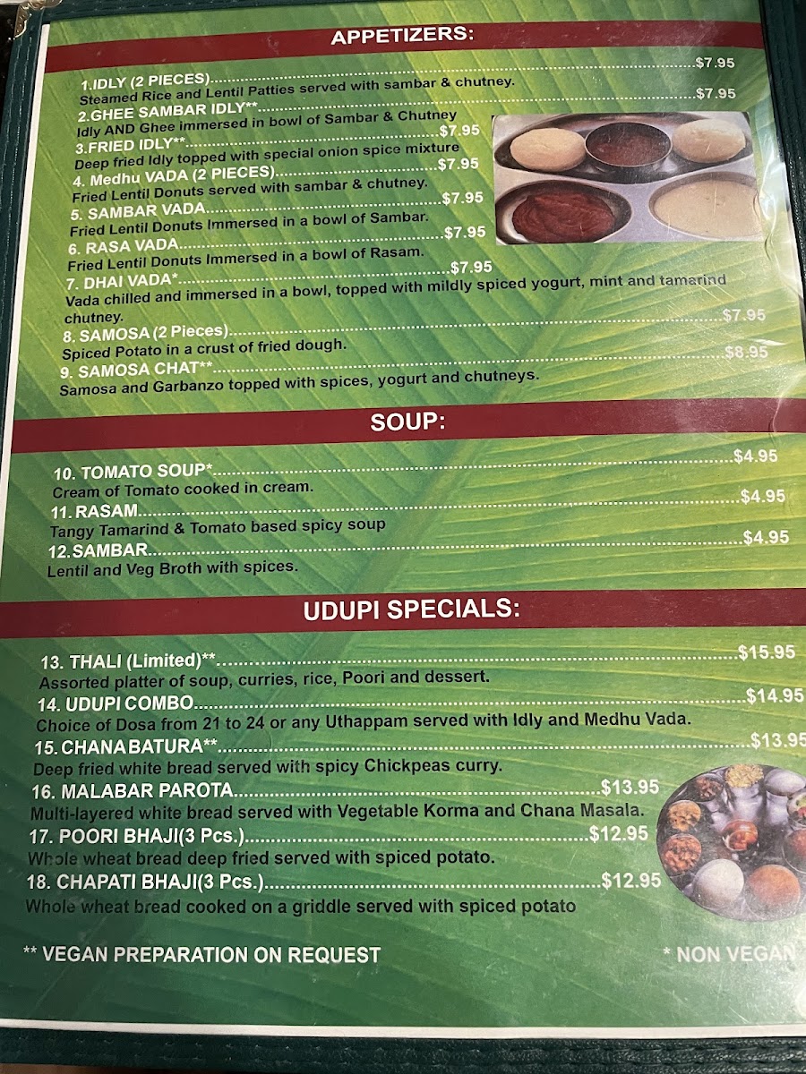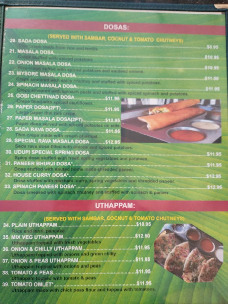 Step inside Udupi Palace, and you'll immediately be enveloped by the rich aromas of spices and freshly prepared dishes. The restaurant proudly specializes in a variety of traditional South Indian favorites, with a menu that invites you to embark on a flavorful journey. Popular dishes include the Udupi Combo, a sumptuous selection of dosas or uthappam paired with idly and medu vada, all for just $16.95. The crispy and golden dosas are a must-try, delicately spiced and served alongside a punchy sambar and coconut chutney that dance on the palate.